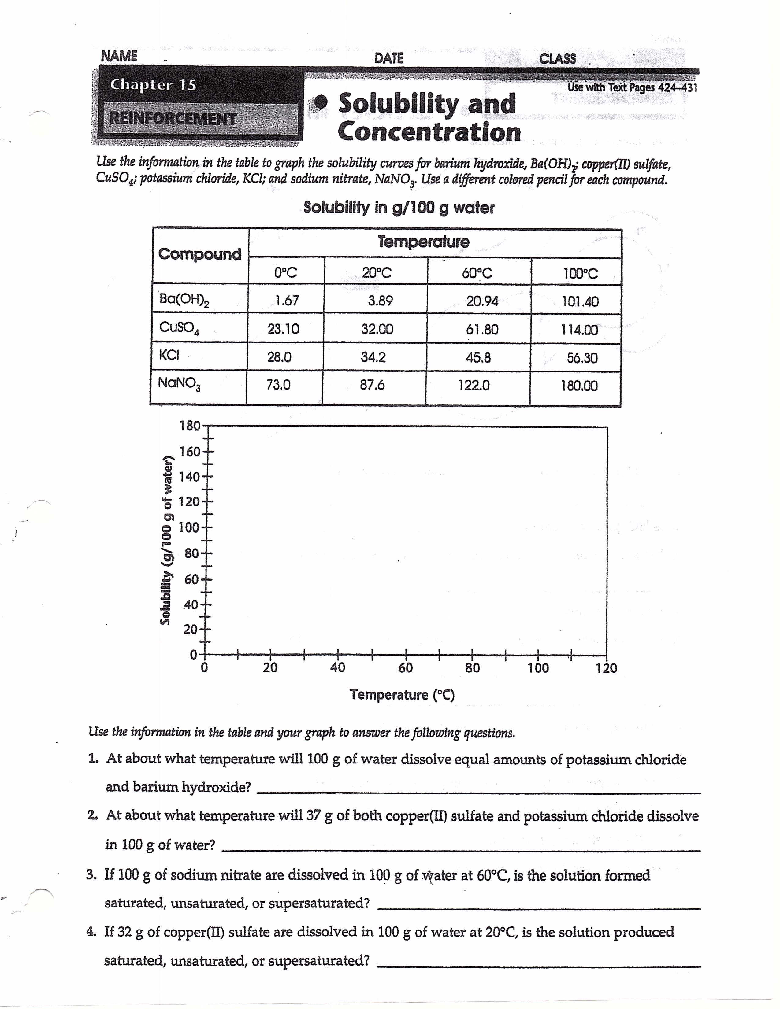 Solubility And Concentration Worksheet / Chemistry 12 /